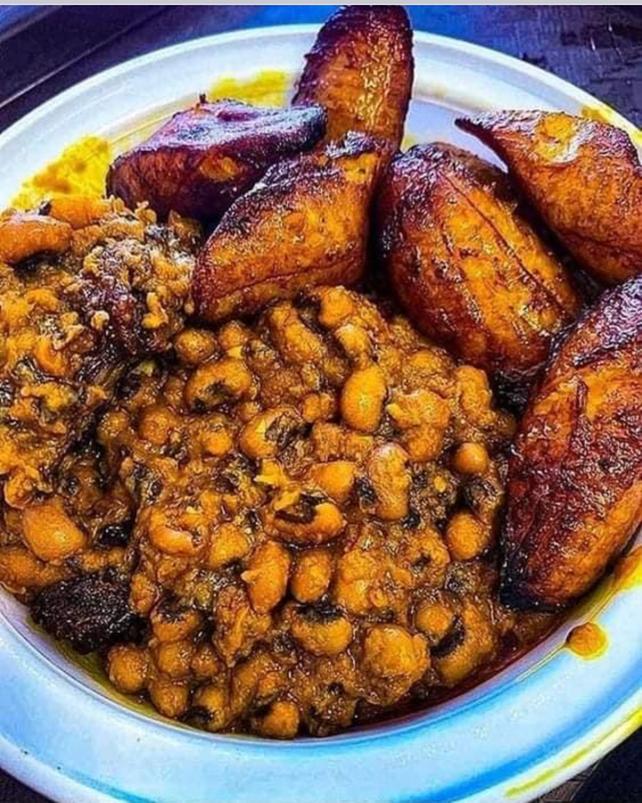 Slow-cooked beans with a hint of spice, paired with sweet, golden fried plantains.