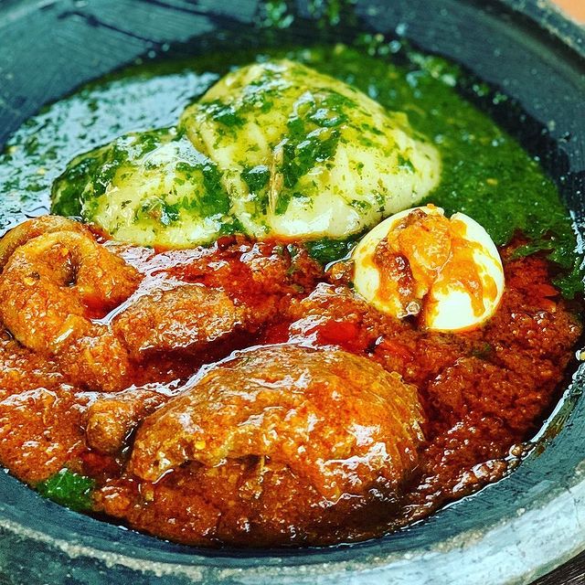 Served with two traditional stews blended together for bold, layered flavor paired with boiled egg and assorted meats.